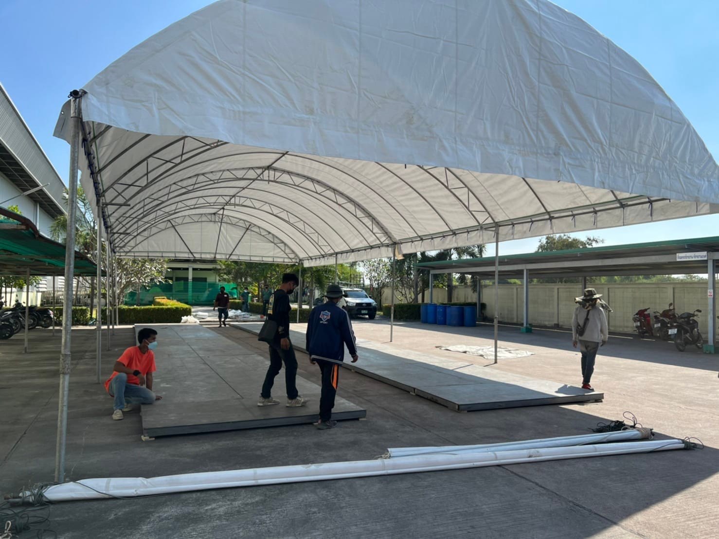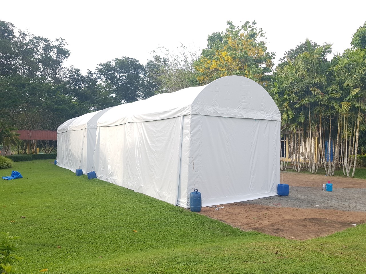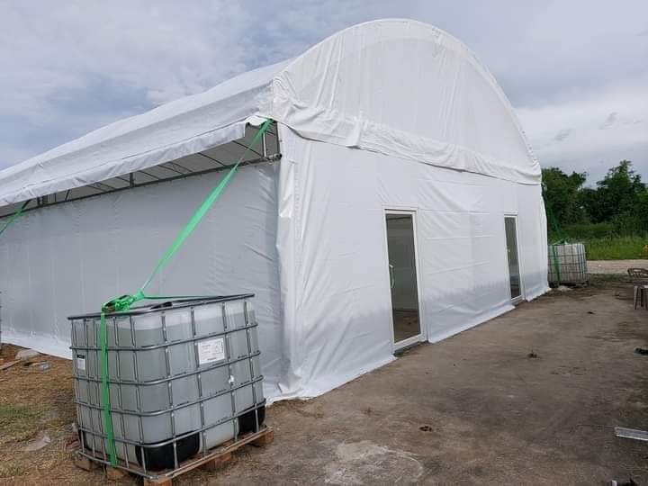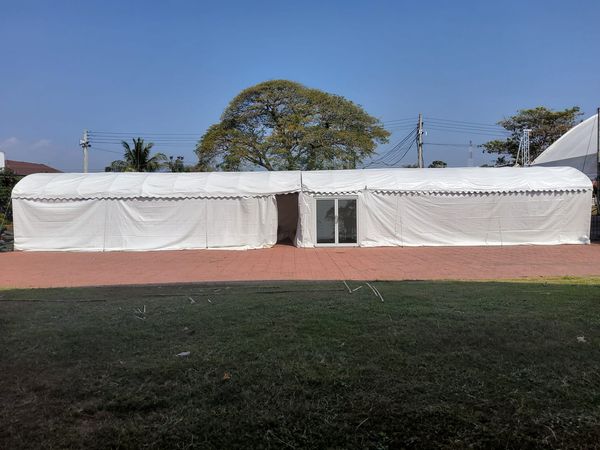 - เต็นท์ทรงโค้งสีขาว ขนาดหน้ากว้าง 18 เมตร ต่อความยาวได้ช่วงละ 6 เมตร (ความยาวตามต้องการ)
