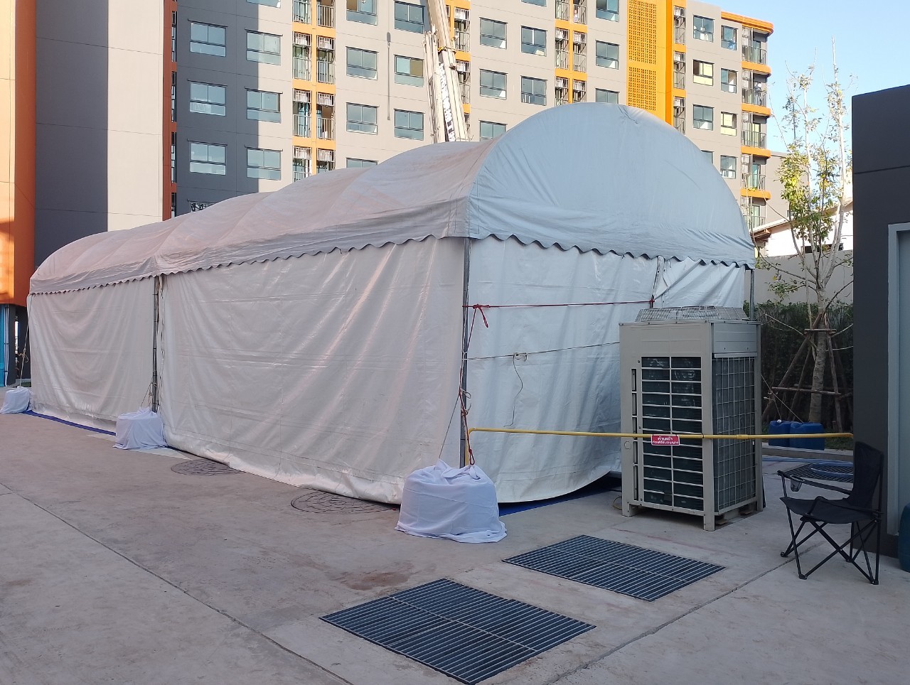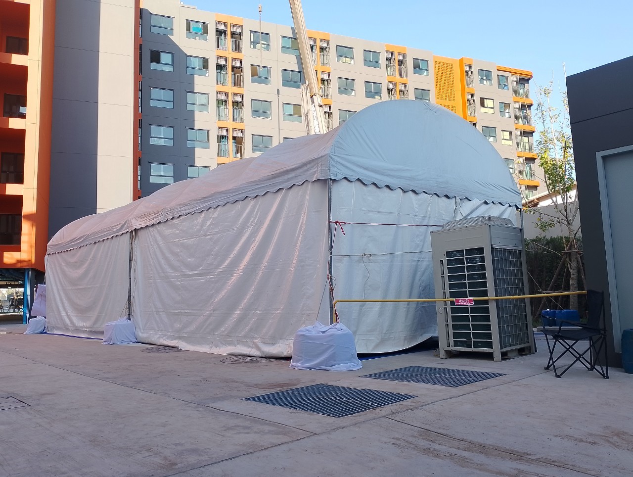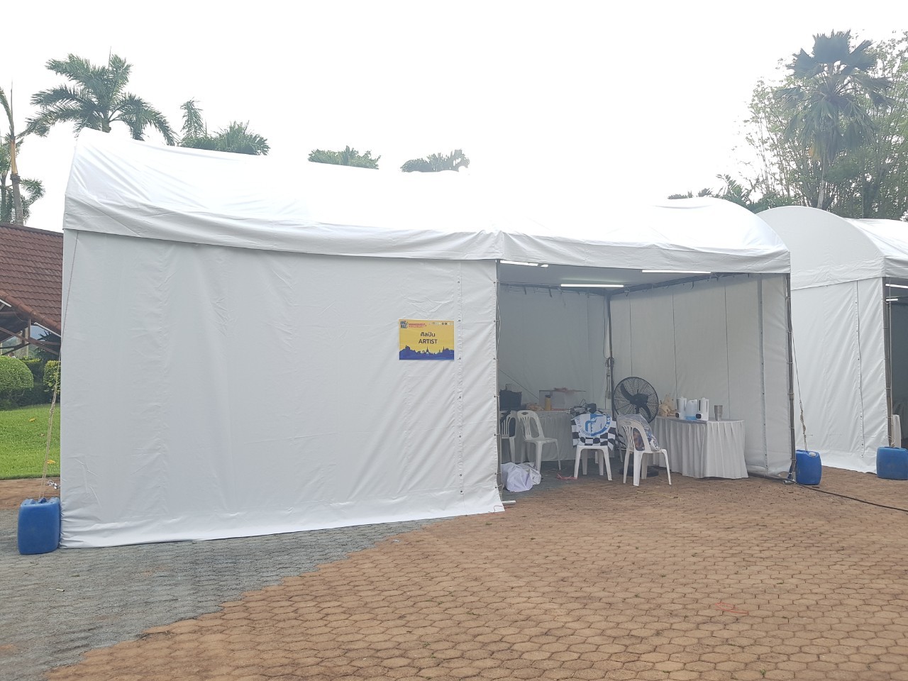 - เต็นท์ทรงโค้งสีขาว ขนาดหน้ากว้าง 18 เมตร ต่อความยาวได้ช่วงละ 6 เมตร (ความยาวตามต้องการ)